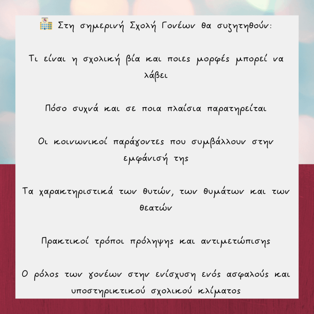 • Ο ρόλος των γονέων στην ενίσχυση ενός ασφαλούς και υποστηρικτικού σχολικού κλίματος